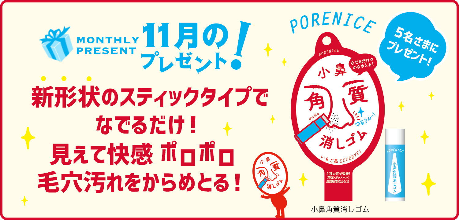 2017/11/17 apricot-manager ■ 応募サイト:バイソン ■ 締切日:2017年11月27日 ■ 抽選で5名様 ポアナイス「小鼻角質消しゴム」を抽選で5名様にプレゼントいたします。 応募はこちらから