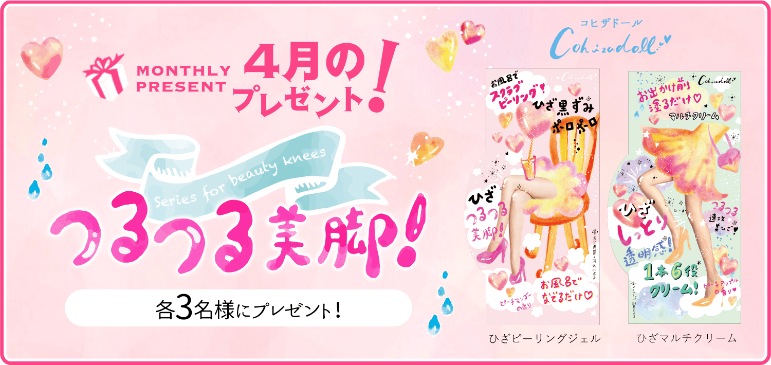 コヒザドール「ひざピーリングジェル・ひざマルチクリーム」を抽選で6名様にプレゼントいたします。