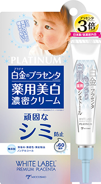 国産100%のプラセンタを贅沢に配合。メラニン色素を生成する酸化酵素チロシナーゼを阻害し、新陳代謝を活性化してメラニンを放出。表皮細胞へのメラニンの受け渡しをブロックする事により、シミの増加を抑制します。