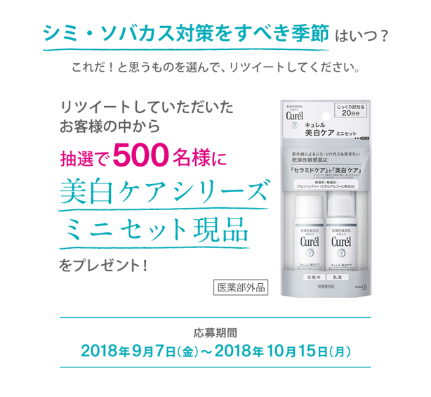 美白ケア ミニセット現品を抽選で500名様にプレゼントいたします。