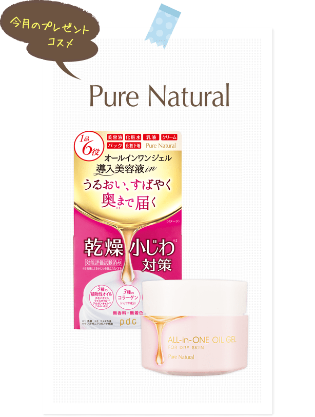 ピュア ナチュラル オールインワンオイルジェルを抽選で20名様にプレゼントいたします。