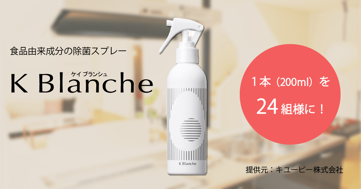 100%食品由来成分の除菌スプレー「K Blanche (ケイ ブランシュ)」を抽選で24名様にプレゼントいたします。