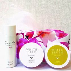 美白成分のトラネキサム酸&炭酸の効果でシミの生成をストップ、新陳代謝を促進して今あるシミを排出する化粧水「スパークル ホワイトニングミストローション」、化粧水~パックまで、1個で7役のトラネキサム酸配合オールインワンクリーム「ホワイトトゥルース」の3点で気になるシミを集中美白します。