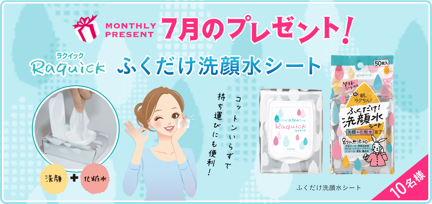 ラクイック「ふくだけ洗顔水シート」を抽選で10名様にプレゼントいたします。