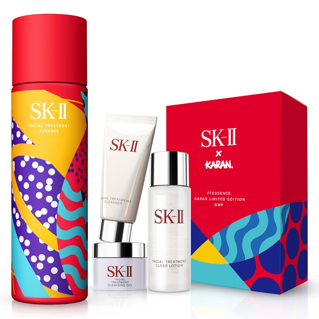 たっぷり使える230mlの「フェイシャル トリートメント エッセンス」の現品を中心に、ミニサイズのクレンジングジェル、洗顔料、ふき取り用化粧水をセット