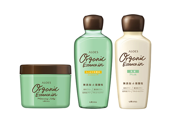 「アロエス」は、オーガニック認証を受けた植物から抽出されたアロエベラ液汁、ホホバ葉エキス・トウキンセン花エキス(すべて保湿成分)配合で、無添加処方のスキンケアシリーズ