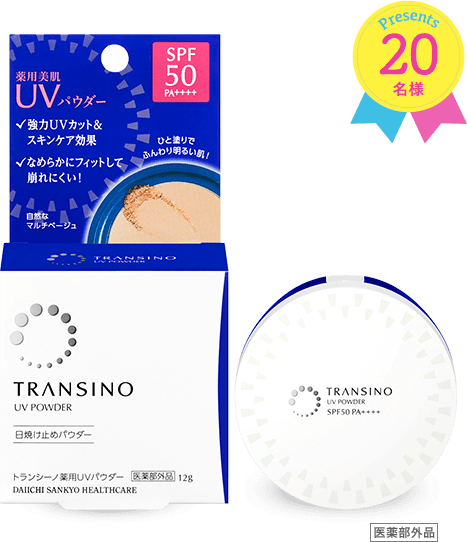 トランシーノ薬用UVパウダーなどを抽選で40名様にプレゼントいたします。